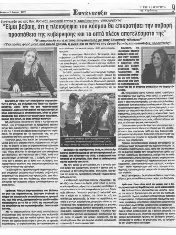 Το 2019, μετά από πολλές αποτυχημένες προβλέψεις και επιδιώξεις της αντιπολίτευσης, τελικά θα έχουμε εθνικές εκλογές. Οι πολίτες θα κρίνουν, θα συγκρίνουν και θα αποφανθούν. Προσωπικά είμαι βέβαιη, ότι η πλειοψηφία του κόσμου θα επικροτήσει την σοβαρή προσπάθεια αυτής της κυβέρνησης και τα απτά πλέον αποτελέσματα της.
