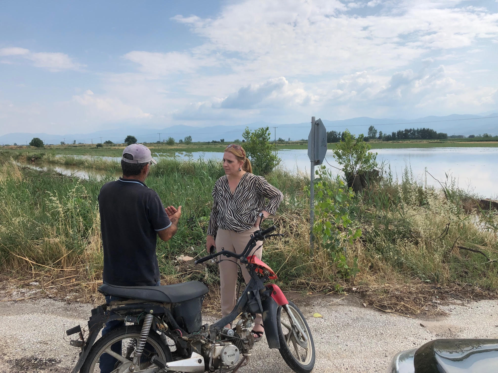 Στο σημείο του φράγματος, όπου δημιουργήθηκε η ανάσχεση των υδάτων, με συνέπεια να πλημμυρίσουν χιλιάδες στρέμματα καλλιεργειών, συζήτησε με αγρότες της περιοχής.